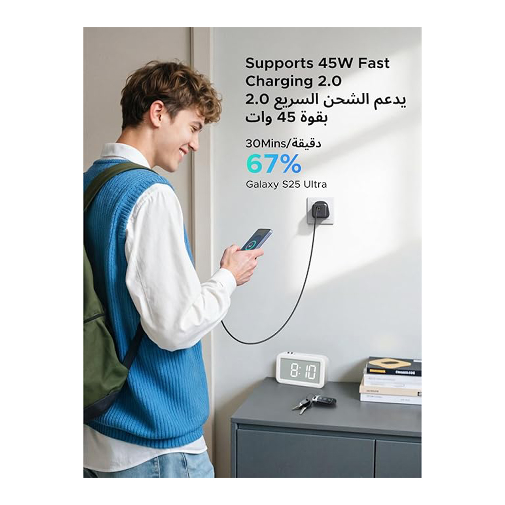 • 3-in-1 USB C Charger: Equipped with two powerful USB-C ports support up to 45W output and a 22.5W USB-A port.